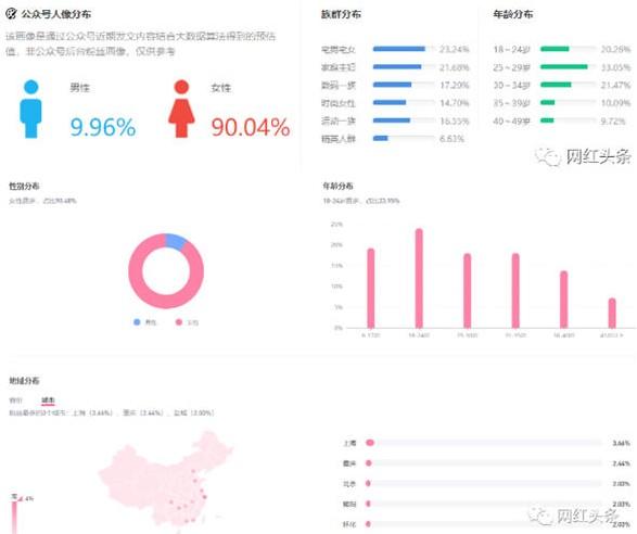 从数据我们可以看出不管是公众号还是抖音,90%的用户都为女性,用户最多的城市也大多在北上广城市。