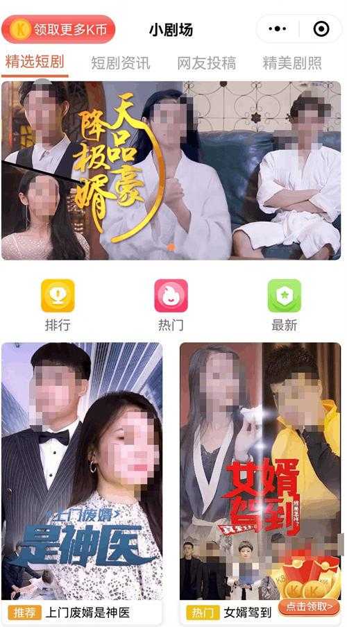 这个玩法类似小说,就是把小说视频化,看这样的短视频确实会上瘾,后面知道这个玩法是短剧后,还知道他们在微信上主要是小程序,我就去搜索短剧,不搜不知道,搜索发现,玩法真牛逼,霸屏操作,一个公司注册几十个账号,操作这个项目。