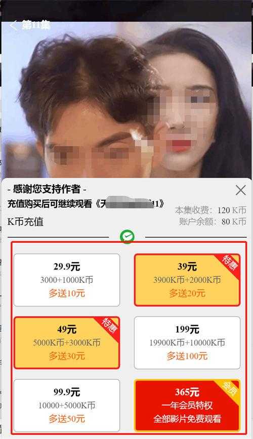 看了前面的几节,还可以,剧情比较吸引人,想接住看下面的内容,当我看到十多节时候,提示不能看,类似看小说,前面都是免费看,当小说精华的时候,就提示无法查看,需要充值会员。