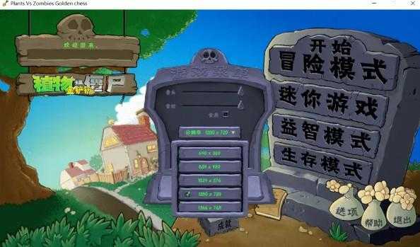 进入游戏可以看到,主界面还是老样子,拥有冒险、迷你、益智和生存四种模式,最主要的是可以调整分辨率,这方面比杂交版要贴心多了