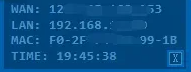 工具很小也很简单,只有38KB,只显示4项内容,WAN IP,LAN IP,MAC地址,当前时间