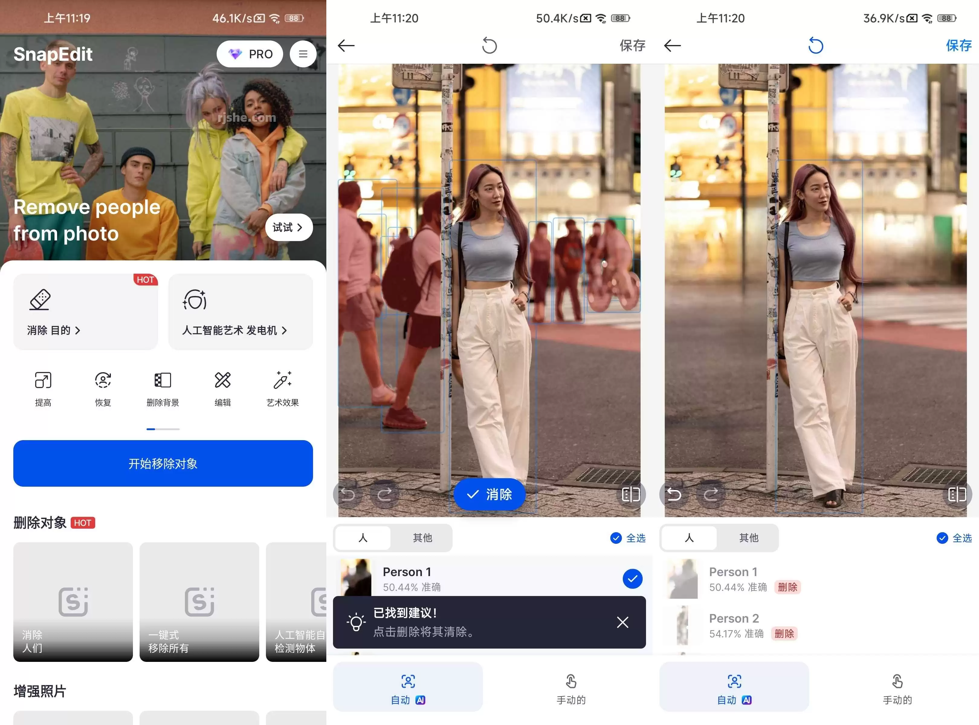 删除人物和对象:使用 SnapEdit 删除照片中不需要的对象。 您是否曾在背景中与某个人合影,或者桌上有一堆您想要消失的杂物? SnapEdit 可帮助您删除照片中不需要的任何内容,只需轻点一下即可使照片更加专业。