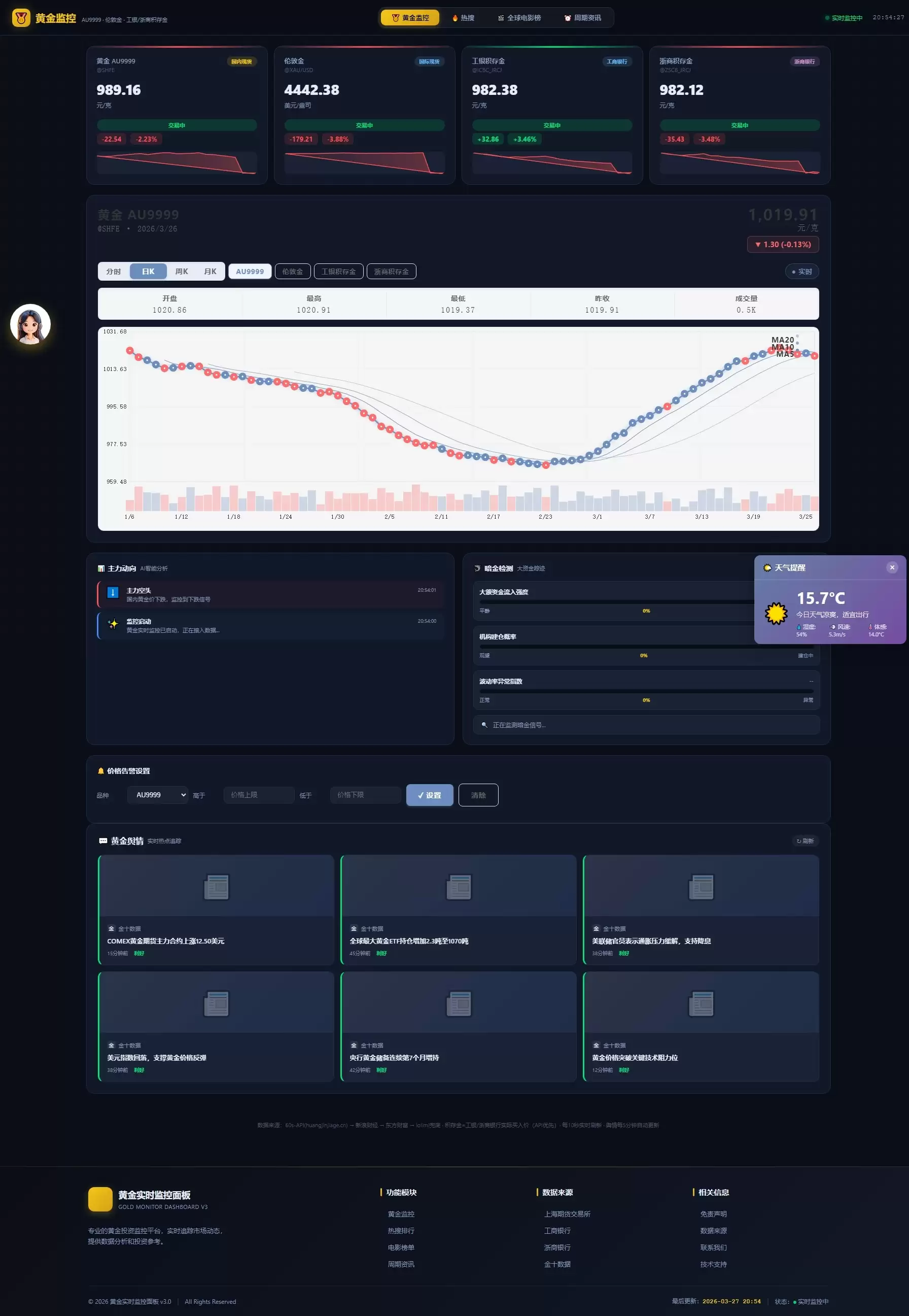 新版黄金价格监控源码(K线图模块,黄金舆情模块,AI智能客服)
