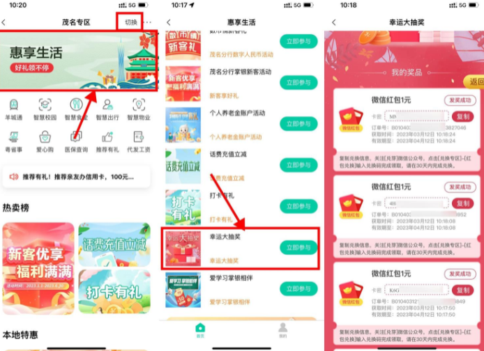 农行幸运大抽奖必中3元红包