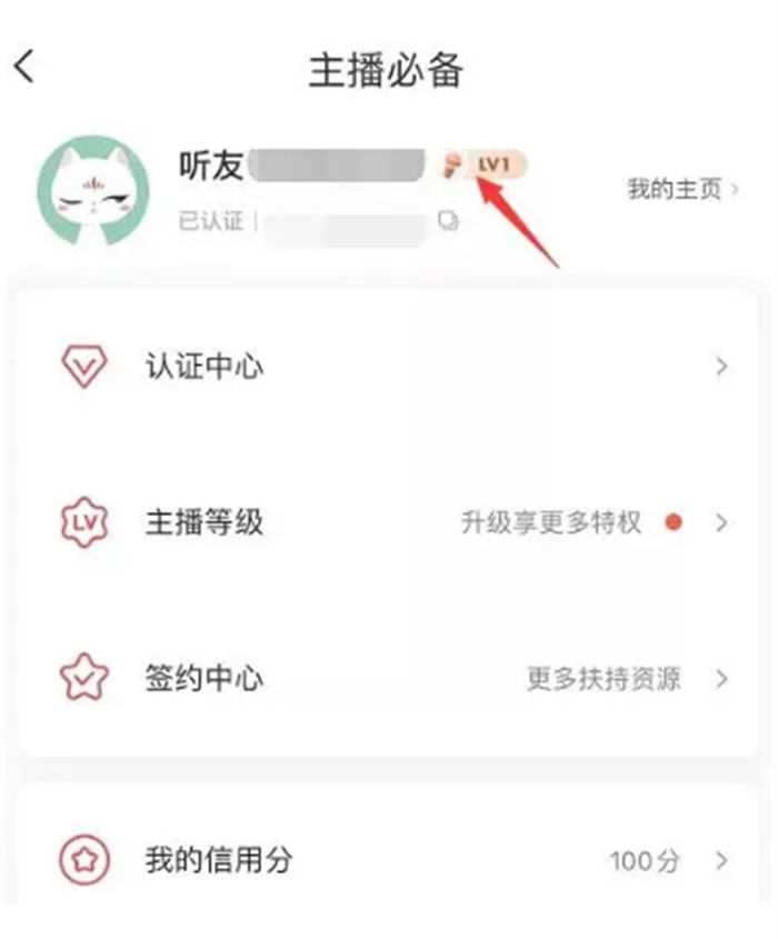 实名认证后就是V0,上传3条大于1分钟的音频就到V1,到V1就代表我们正式进入主播等级体系啦。等级分达到升级所需的分值就可以直接升级。等级分越高,权益越多,机会也越多。