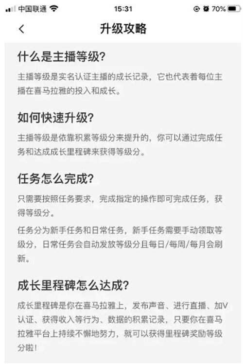 入门后就开始修炼段位了。喜马拉雅主播的段位按照级别划分,等级是对主播的综合评价。总共有9个级别。不同的喜马拉雅主播等级对应的权益不一样。而想要参加海选任务,主播等级必须要达到5级及以上。