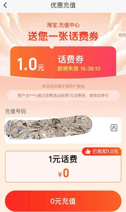 【参与方式】淘宝APP-充值中心-自动弹出话费卷-充值后在点击左上角薅羊毛,进去还能在弹一个话费卷-(看测试图) 具体自测[玫瑰]