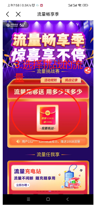 2.搜索“流量畅享季”-这个活动全国通用的都有(只是挑战流量额度不一样,有些人有4种15g/25g/50g/100g,有些人只有一种100g)