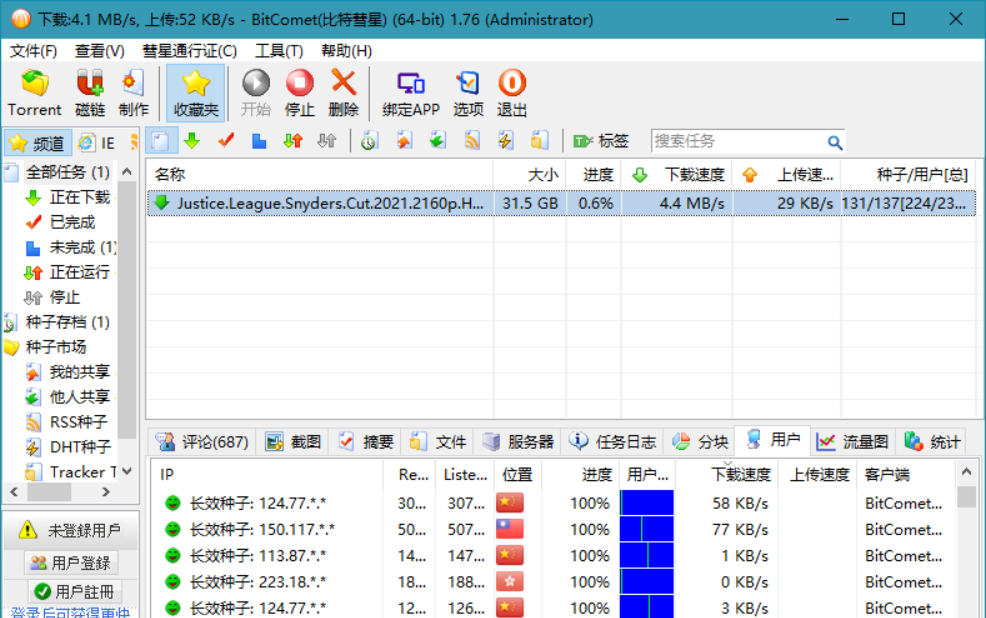 比特彗星(BitComet)是一款专业的老牌国产BT下载软件的免费BT资源下载利器.比特彗星中文版BitComet最新版独有长效种子功能,大幅度增加下载速度,增加种子存活率.这款BT下载客户端支持BT/HTTP/FTP,支持BitTorrent(BT协议),Magnet(磁力链接),eD2k(电驴下载加速),支持制作BT种子文件发布,自动订阅挂机做种,支持网页远控,支持DHT网络及UPnP映射,支持32M区块分区,具有磁盘缓存提速服务,支持视频播放边下边看