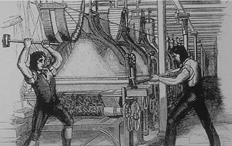 200多年前,人类史上第一次大规模抵制新技术的运动-“卢德运动”爆发。在第一次工业革命时期,机器生产逐渐取代手工劳动,导致大批手工业者失业,工人们将机器看作是返贫的始作俑者。英国诺丁汉郡的袜商用织袜机织出了便宜的袜子,严重冲击了织袜工人的收入,一名叫卢德的工人首先捣毁了自己操作的织袜机,拉开了“卢德运动”的序幕,更多织工们一拥而上,捣毁工厂的织袜机,这一运动随后蔓延到多地。