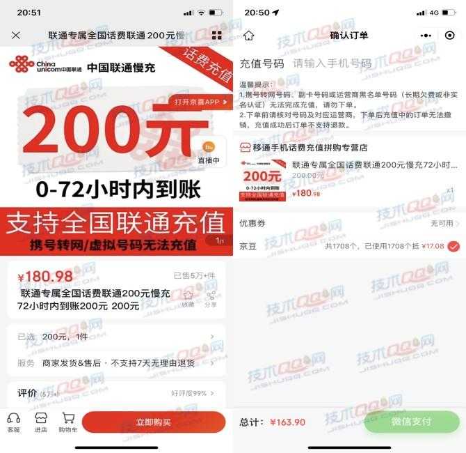 本文可以180元充值200元话费,算下来也就是9折话费,支持全国联通手机号码
