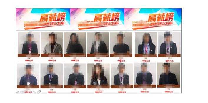 因此,学生拿到一两万、两三万的薪资实现“高薪就业”、“全员就业”也就不足为奇了。学校再拿这些学生的画像和薪资做成巨型横幅,到处宣传,形成正向反馈效应。