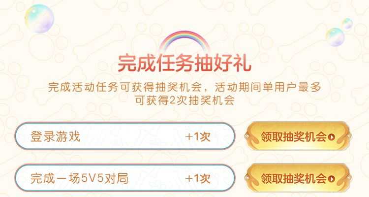 王者荣耀冬日暖心福利抽1-8QB,登录1次,玩1局5V5获得1次,一共能抽2次。