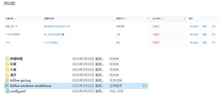 打开bililive-windows-amd64.exe 后 从浏览器输入: 127.0.0.1:8080 进入配置页面,从配置页面添加直播url 即可开始监控直播、并且录制。