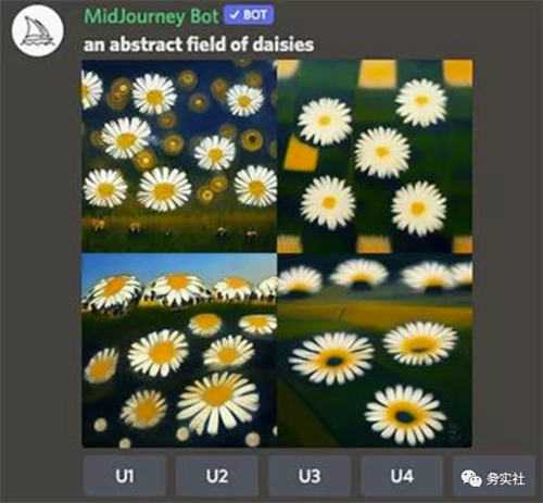 这里的 U 代表选择一张放大细化, V 代表在这张图基础上进行变化。如果没有满意的右侧的刷新按钮是重新按照关键词再次生成四张。