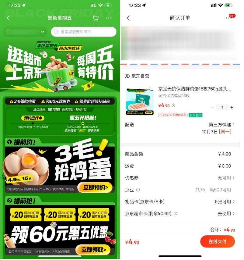 京东超市黑五4.9亓抢15枚鸡蛋
