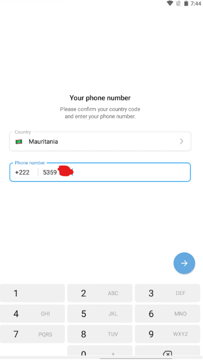 3.填写您的国家区号及手机号,点击右下角的箭头,接收验证码并填写,按照提示设置头像与昵称,图三为注册成功