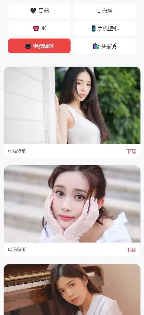 源码默认包含6个热门壁纸分类,适配不同用户需求,分类名称和对应接口可自由修改,无需复杂操作: