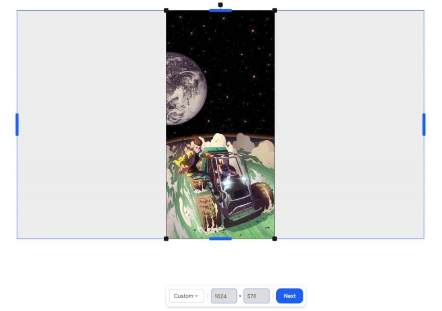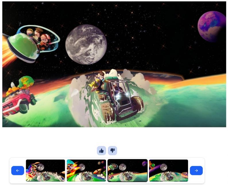 点击 “Next” 后,网站便会自动根据图片中已有的元素,利用 Stable Diffusion 的算法,帮我进行图片联想补全。当然,如果系统最后给出的图片不能让你满意的话,让它重新生成即可。