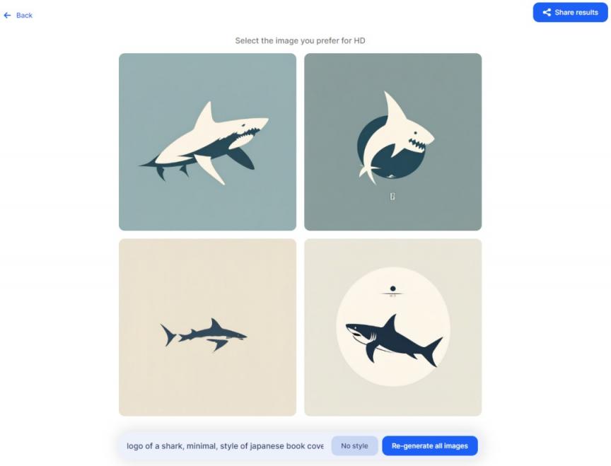 这里我使用的 Prompt 是:logo of a shark, minimal, style of japanese book cover.