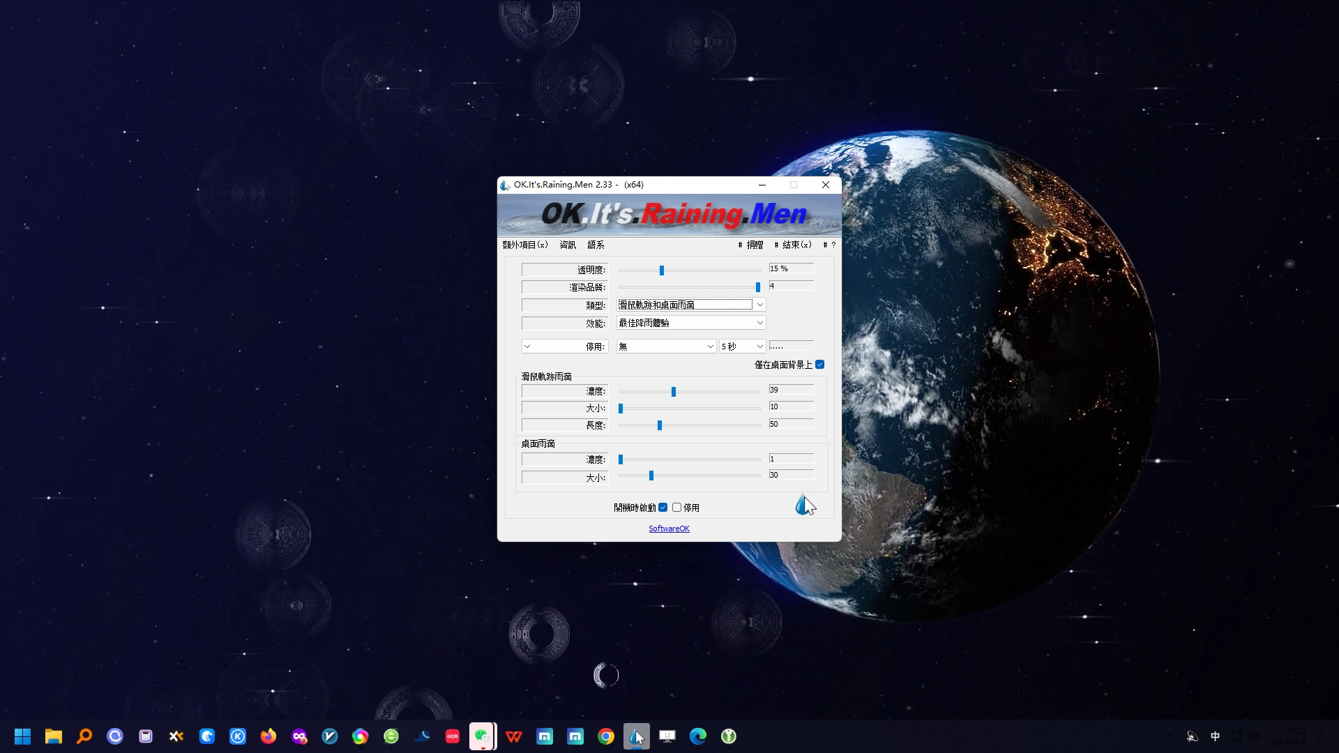 桌面上创建神奇的雨滴,具有美丽的效果和各种自定义功能。支持中文,设置简单的小工具,可以试试