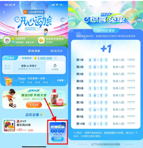 饿了么猜时间下单得惊喜免单