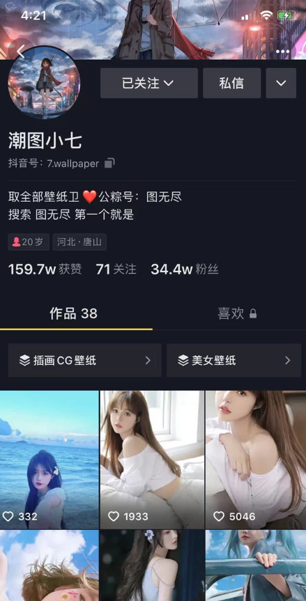 先说成绩吧,6个抖音号,4个公众号8万粉(8万是掉粉后的,因为是美女壁纸,阅读每天保底一万起),每天剪辑15分钟,月广告收益1万多,重头还是导流其他项目的收益。